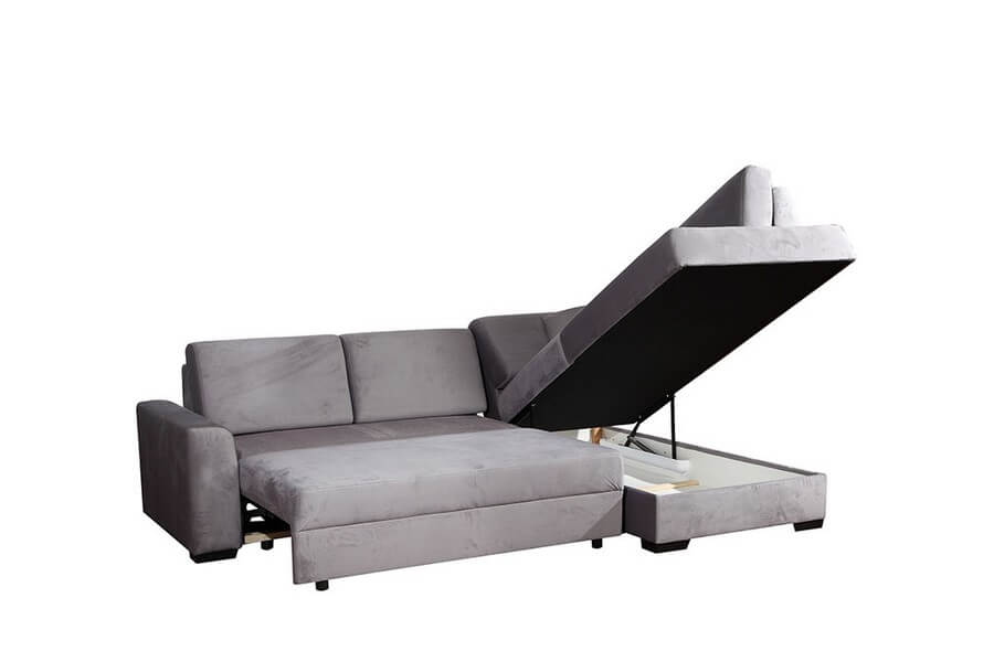 Posiada 2 pojemniki na pościel, w których można przechowywać kołdry i poduszeki. Wysokie oparcie w postaci poduszek oparciowych, z możliwością regulacji góra-dół gwarantują doskonały wypoczynek po ciężkim dniu. Przymocowanie ich na stałe sprawia, że pozostają w tym samym kształcie zapewniając stabilne podparcie pleców.