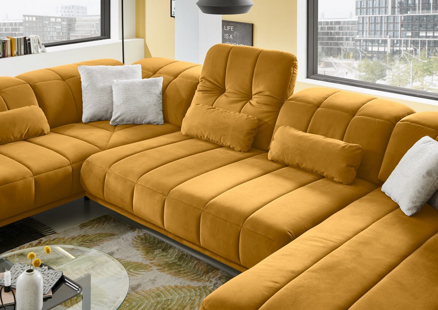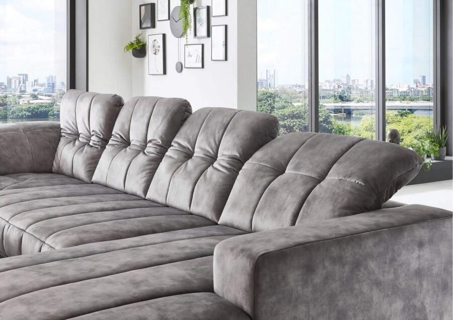Narożnik MP-IN20128 wyposażony jest także w zagłówek z funkcją przesunięcia i optymalizacją pofałdowania, co umożliwia dostosowanie go do własnych potrzeb i zapewnia wygodne podparcie dla głowy i szyi.