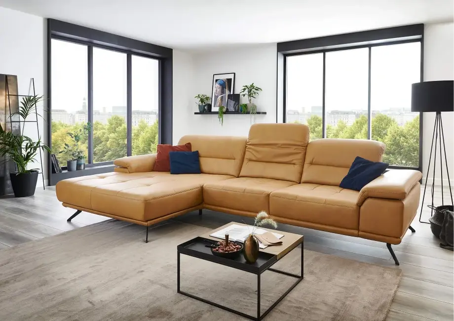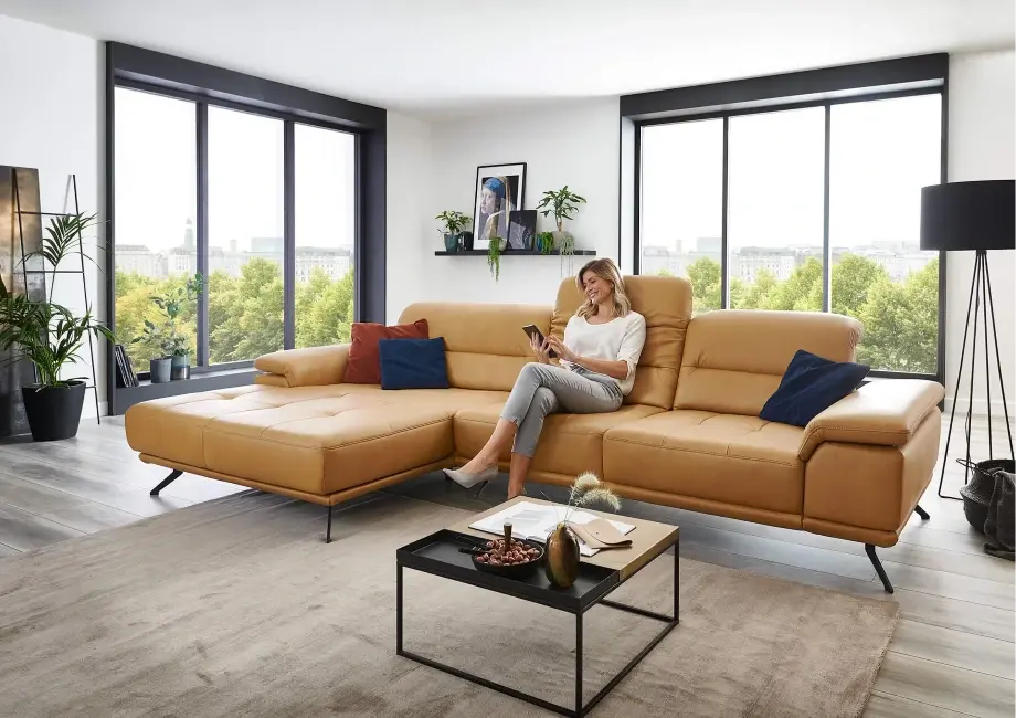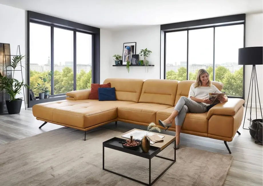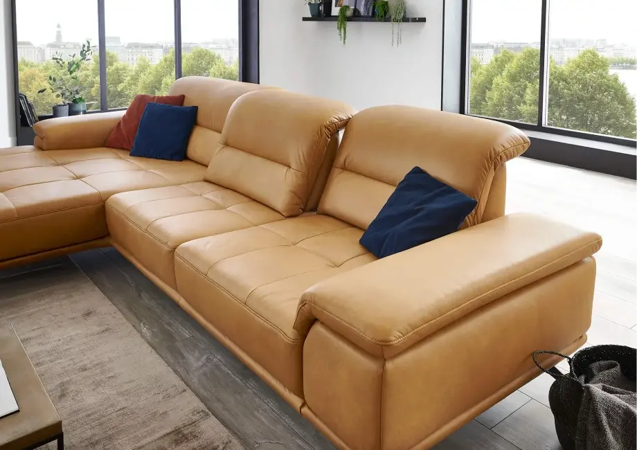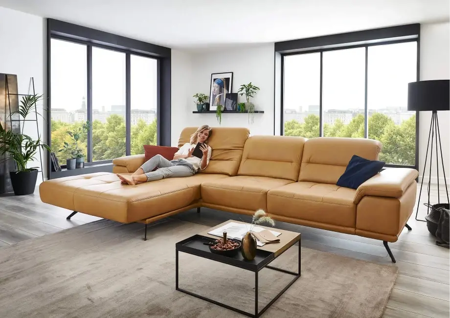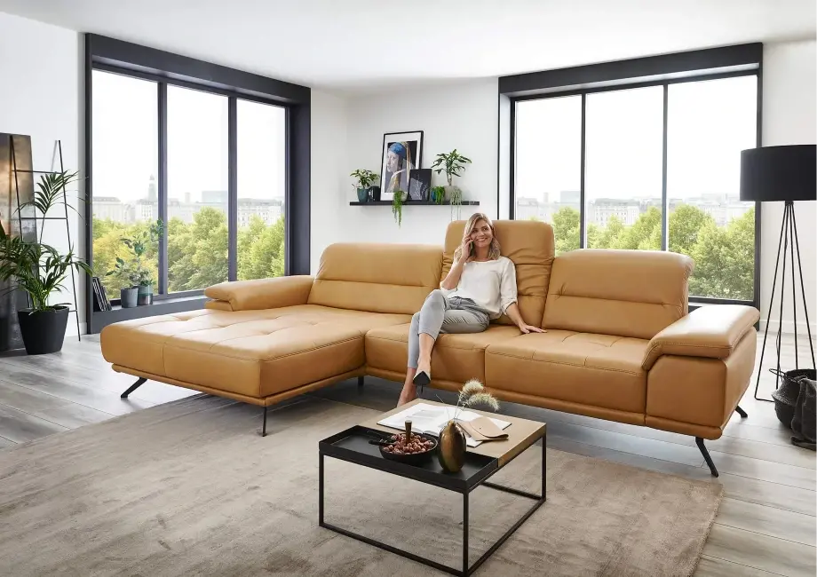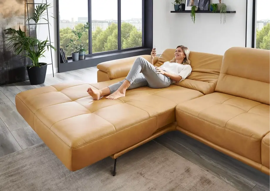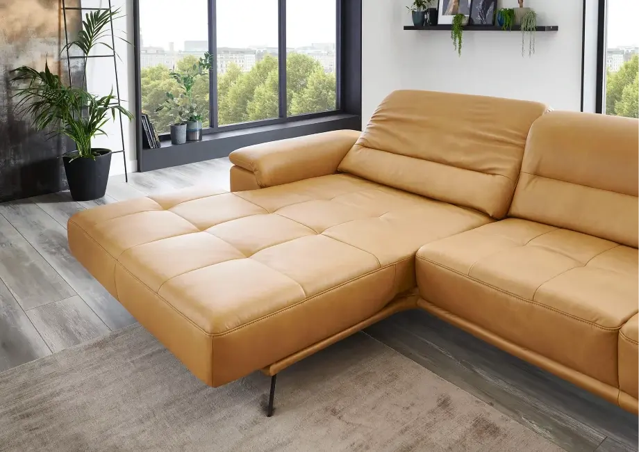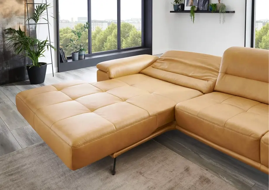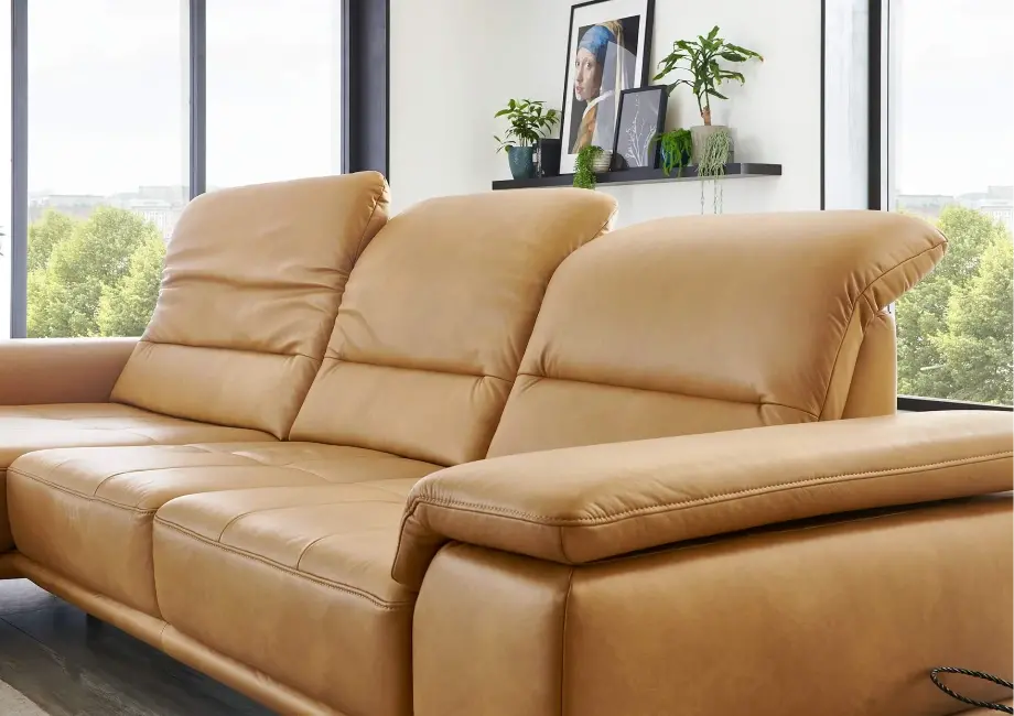 Element wysuwany sterowany silnikiem – dzięki niemu możesz regulować pozycję siedzenia, wysuwając je do przodu o około 19 cm, dostosowując narożnik do swoich preferencji. Regulowany zagłówek z funkcją przesunięcia i optymalizacją pofałdowania.
