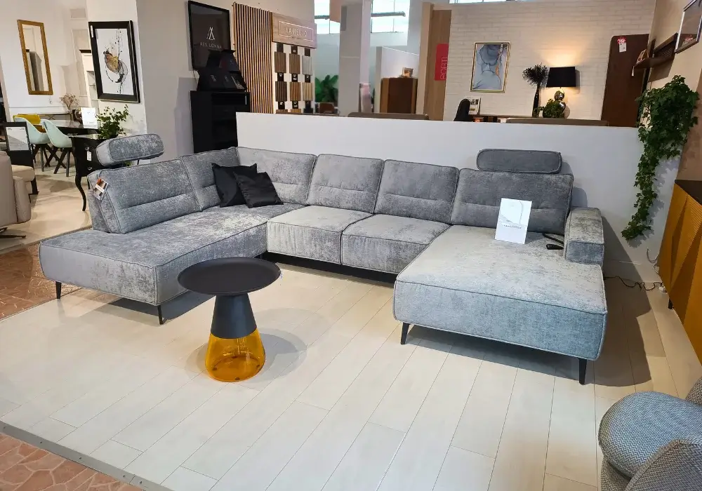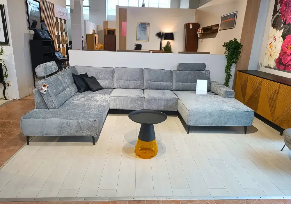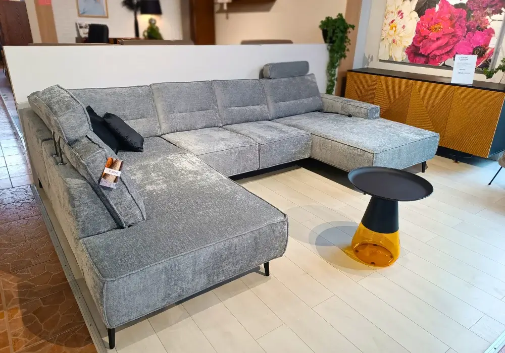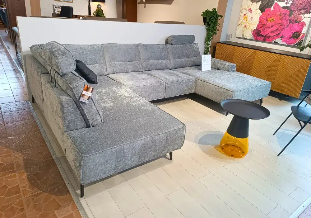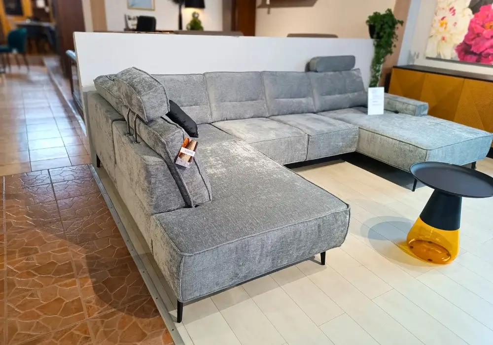 Narożnik MP-IN23123 wsparty jest na czarnych metalowych nogach, a producent oferuje możliwość wyboru spośród trzech opcji stylowych nóg: eleganckie metalowe, czarne z elementami dębu naturalnego lub klasyczne czarne metalowe.