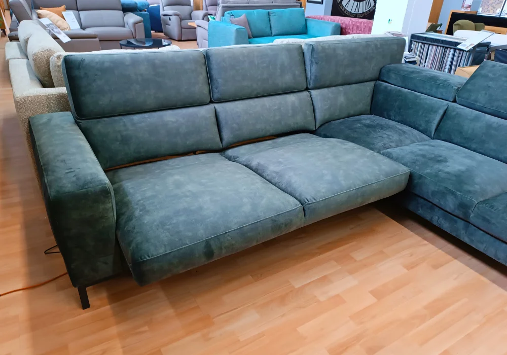 Największym atutem Nayomi jest elektrycznie wysuwane siedzisko, które jednym ruchem zmienia strefę wypoczynku w prawdziwą przestrzeń relaksu. Wieczorny seans filmowy, leniwe popołudnie z książką czy długie rozmowy przy kawie. W siedzisku zastosowano sprężynę falistą, co przekłada się na stabilne podparcie i komfort, który nie znika po kilku miesiącach użytkowania.