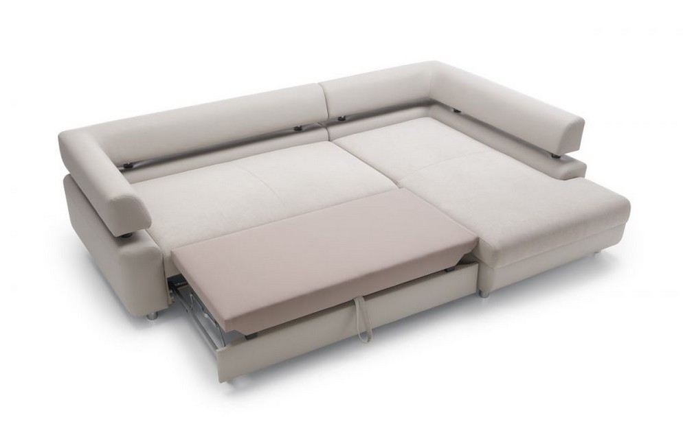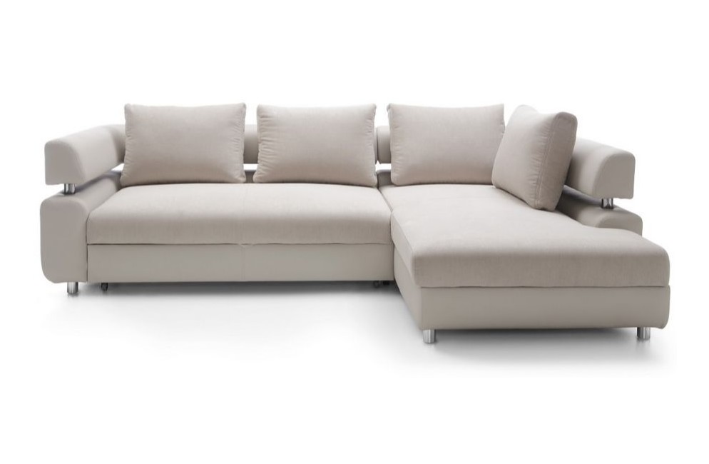 Nowoczesny i elegancki narożnik PANAMA, uniesiona rama oparcia uzupełniona 4 poduszkami tworzy przytulną i komfortową przestrzeń wypoczynku. Model wyposażony w funkcję spania typu DELFIN oraz pojemnik na pościel. Narożnik dostępny jest w wersji lewostronnej i prawostronnej. Wygodne siedziska wypełnione zostały pianką wysokoelastyczną oraz sprężynami falistymi.