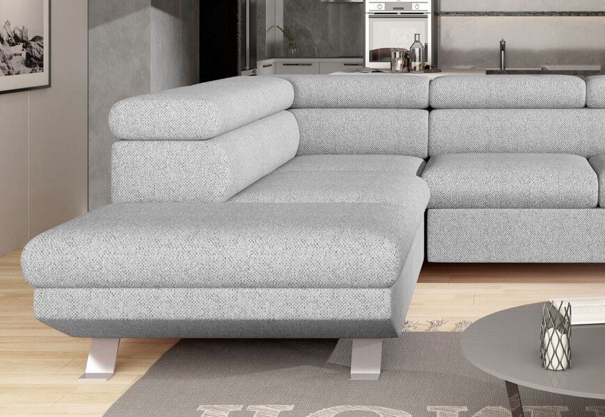 Oryginalne, metalowe nogi narożnika dodają mu nowoczesnego charakteru i podkreślają jego styl. Phoenix nie tylko stanowi wygodne miejsce do siedzenia i spania, ale również wprowadza do wnętrza element wzorniczy, który harmonizuje z różnorodnymi klimatami aranżacji.