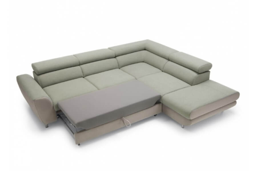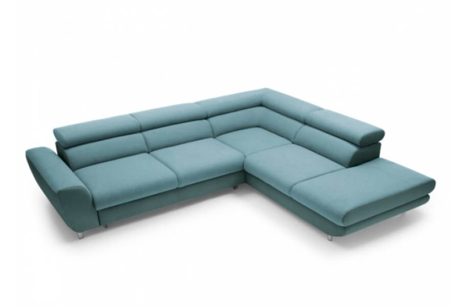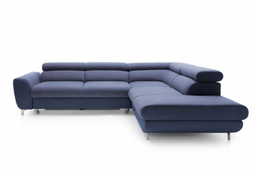 Narożnik posiada również funkcję spania i pojemnik na pościel, co czyni go jeszcze bardziej wszechstronnym. Pełnego komfortu użytkowania dopełniają regulowane zagłówki. Wnętrze zostało wypełnione sprężyną falistą, co zapewnia wygodę podczas siedzenia i odpoczynku. Możemy być pewni, że każdy moment spędzony na tym narożniku będzie komfortowy i relaksujący.