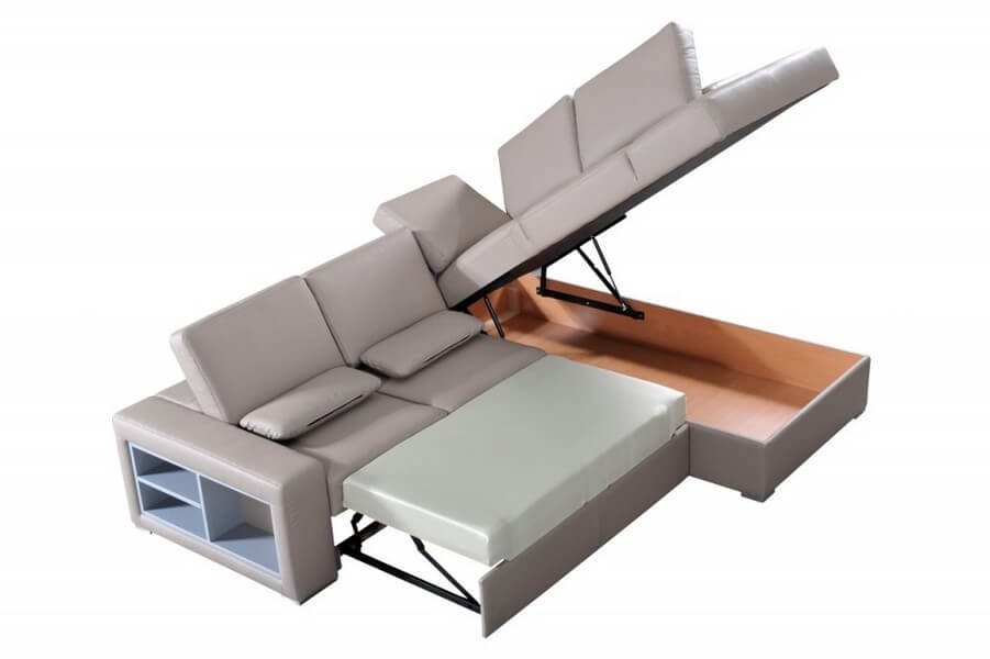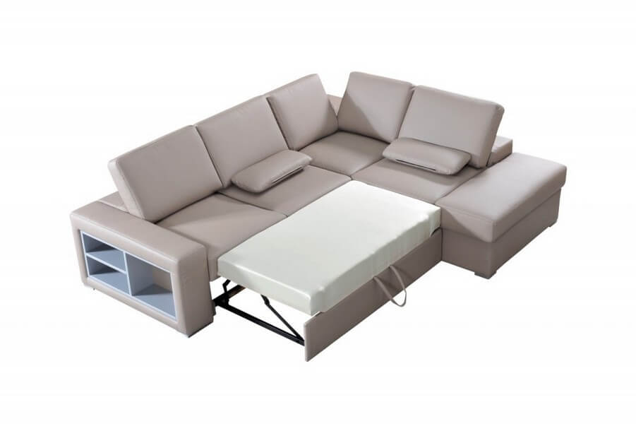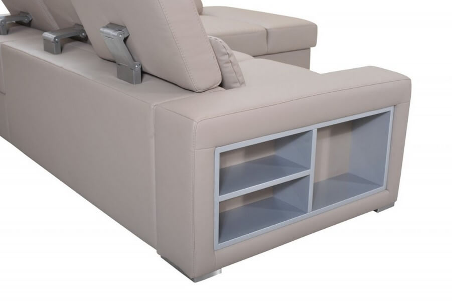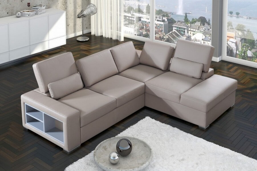 Komfortowy i funkcjonalny narożnik z funkcją spania i pojemnikiem na pościel. Komfortowe siedziska zapewniają nowoczesne pianki wysokosprężyste. Posiada regulację głębokości siedziska, regulowane oparcia, w boku narożnika wmontowana jest półka, która świetnie się sprawdza jako miejsce na książki, gazety.
