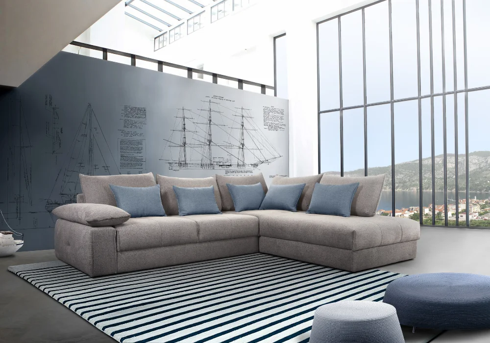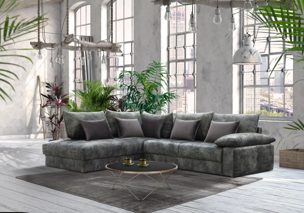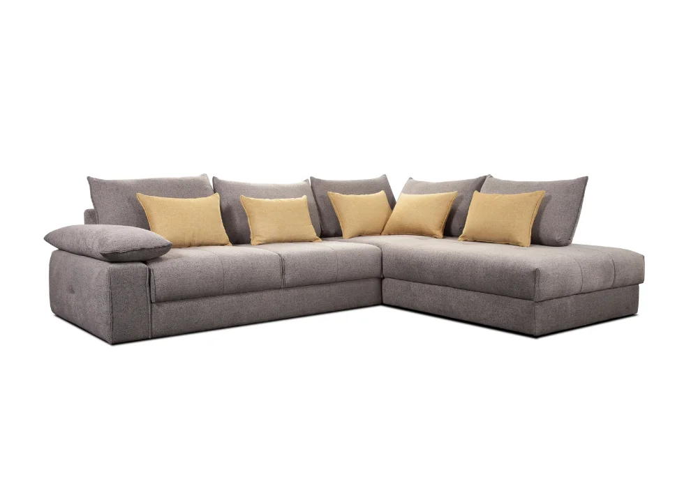 Narożnik Quazi to propozycja dla osób, które cenią głęboki relaks, nowoczesny design i pełną swobodę aranżacji. Jego miękkie, luźne poduszki oparciowe zachęcają do odpoczynku, a wyjątkowo głębokie siedzisko gwarantuje komfort, w który można dosłownie się zanurzyć. Model został zaprojektowany z myślą o przestrzeni wypoczynkowej, to typowy „salonowiec”, który nie posiada funkcji spania, ale oferuje maksymalny komfort w codziennym użytkowaniu.