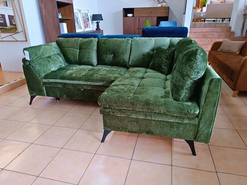 Wymiary: 241x154x93 cm, pow. spania: 143/193 cm, kolorystyka nóg: czarne, chrom. Wypełnienie na całości sprężyna falista. Narożnik w wersji prawostronnej dostępny od ręki.
