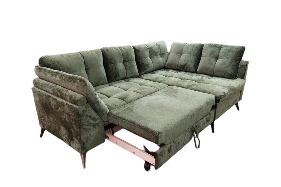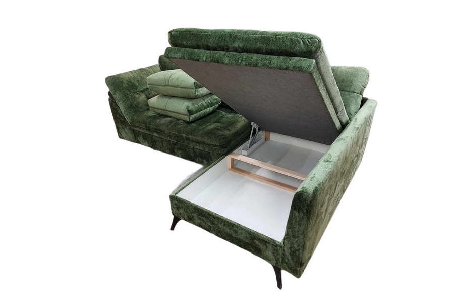 Narożnik Soho 5P posiada funkcję spania, co czyni go doskonałym rozwiązaniem dla osób poszukujących mebla, który spełni zarówno rolę miejsca do codziennego wypoczynku, jak i zapewni komfortową przestrzeń do spania. Dodatkowo, pojemnik na pościel umieszczony wewnątrz narożnika pozwala na przechowywanie pościeli czy dodatkowych poduszek.