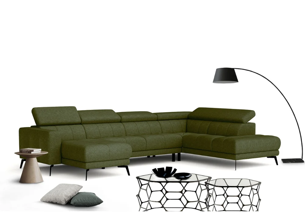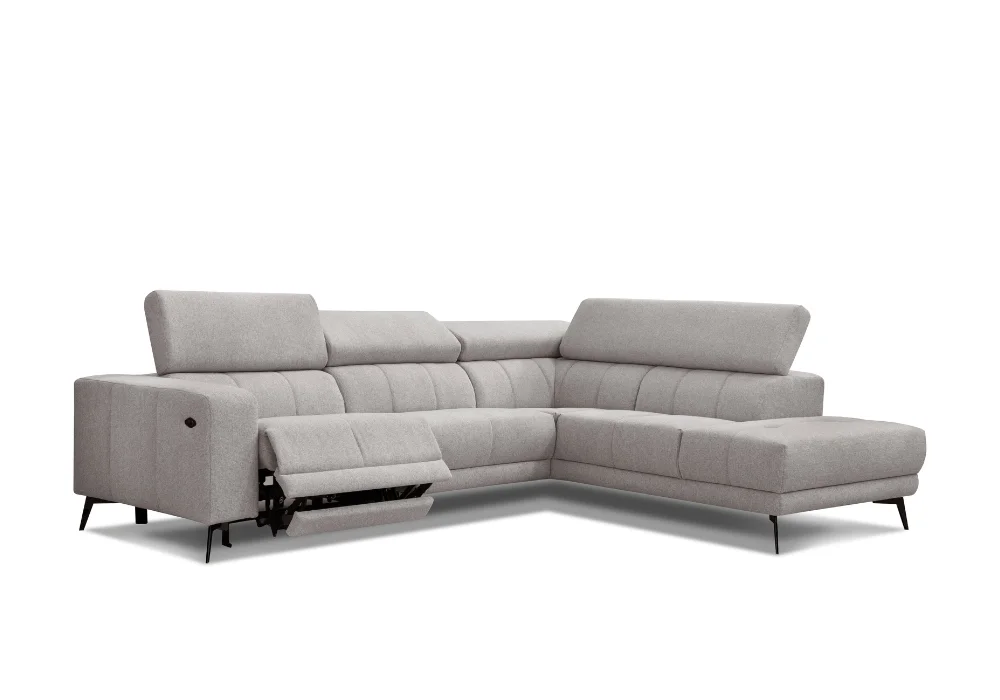 Narożnik Stuart to kwintesencja współczesnej elegancji i komfortu. Jego opływowe linie oraz starannie zaprojektowane proporcje sprawiają, że wnętrze nabiera lekkości i harmonii, a miękkie obicie wręcz zaprasza, by zanurzyć się w chwilach błogiego relaksu. Dzięki elektrycznej funkcji relaks i regulowanym zagłówkom można jednym ruchem dopasować pozycję siedzenia do nastroju, od spokojnego wieczoru z książką po pełne odprężenie po intensywnym dniu.
