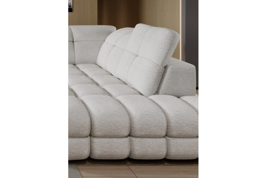Regulowane zagłówki to kolejny atut tego narożnika, pozwalające na dopasowanie kąta nachylenia, co gwarantuje wyjątkowy komfort podczas chwil relaksu. Dzięki temu każdy użytkownik może znaleźć swoją idealną pozycję, idealnie odpowiadającą jego indywidualnym preferencjom. Dodatkowo, Tollo XL został wyposażony w pojemnik na pościel – praktyczne miejsce do przechowywania dodatkowego kompletu pościeli.