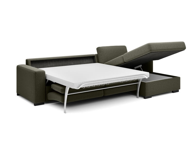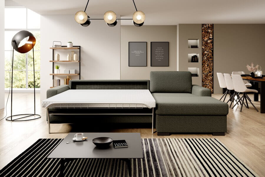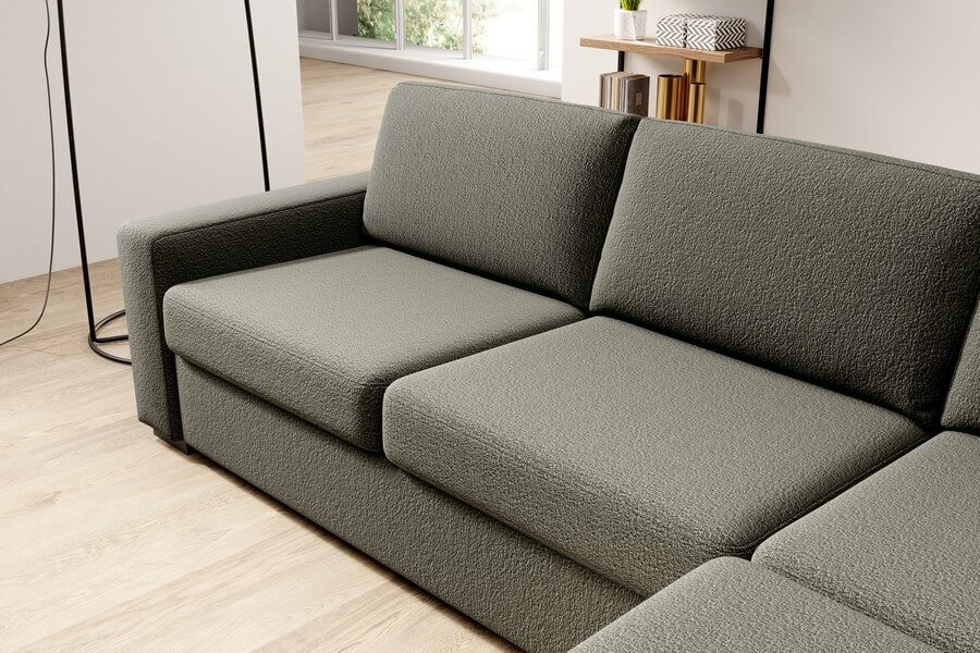 Narożnik Vanilla to mebel o minimalistycznej formie, który został zaprojektowany w taki sposób, aby subtelnie podkreślać charakter wnętrza. Jego estetyka jest skupiona na prostocie i elegancji, co pozwala mu doskonale wkomponować się w różne aranżacje. Jednym z największych atutów narożnika Vanilla jest włoski system rozkładania, który pozwala jednym ruchem przekształcić go w wygodne łóżko. Mechanizm jest niezwykle łatwy w obsłudze i umożliwia szybkie dostosowanie mebla do potrzeb użytkownika. Łóżko jest wyposażone w materac wypełniony pianką wysokoelastyczną, co zapewnia wygodny i komfortowy sen.