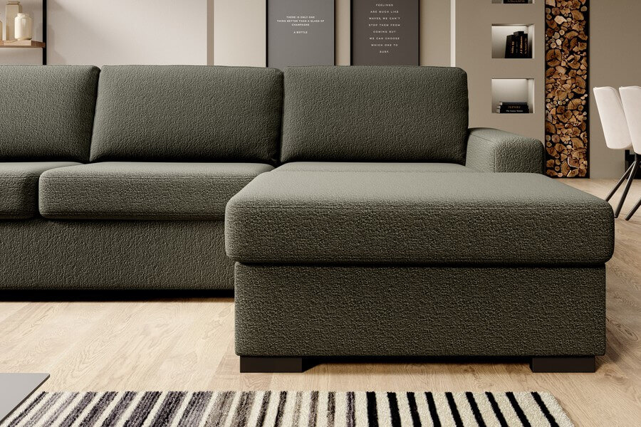 Prosty, ale zarazem efektowny design narożnika Vanilla przyciąga uwagę swoją elegancją i funkcjonalnością. To mebel, który docenią osoby ceniące sobie minimalistyczne rozwiązania, bez zbędnych ozdobników. Jego czyste linie i minimalistyczne wykończenie pozwalają na podkreślenie charakteru i stylu wnętrza. Komfort użytkowania narożnika Vanilla jest niezaprzeczalny, zarówno podczas codziennego siedzenia, jak i podczas korzystania z funkcji spania. To idealny wybór dla tych, którzy chcą łączyć estetykę z praktycznością, bez rezygnacji z wygody.