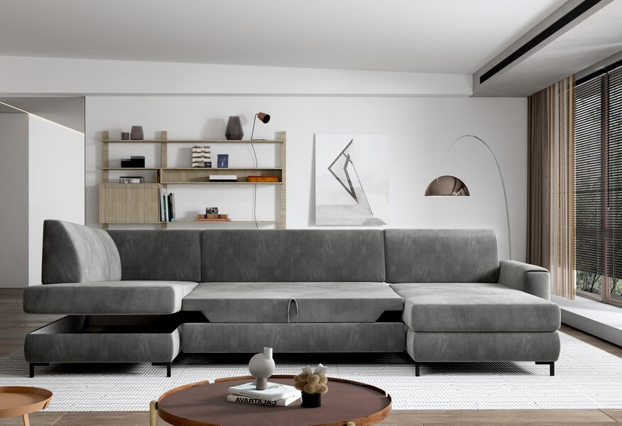 Jednym z atutów tego narożnika jest funkcja spania typu Delfin. Zaledwie kilka ruchów pozwala przekształcić go w wygodne łóżko, co stanowi praktyczne rozwiązanie dla osób poszukujących dodatkowej przestrzeni sypialnianej. Dodatkowo, narożnik Vocal XL został wyposażony w ukryty w otomanie pojemnik, który jest niezwykle praktycznym dodatkiem. Może być używany do przechowywania dodatkowego kompletu pościeli lub innych przedmiotów, które warto mieć pod ręką, ale niekoniecznie muszą być widoczne.