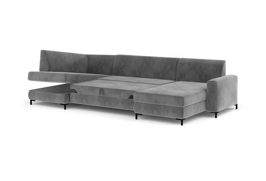 szer. 329 cm, gł. 162/175 cm, wys. 81 cm, wys. siedziska 45 cm, pow. spania 122×275 cm, pojemnik na pościel 167x76x16 cm