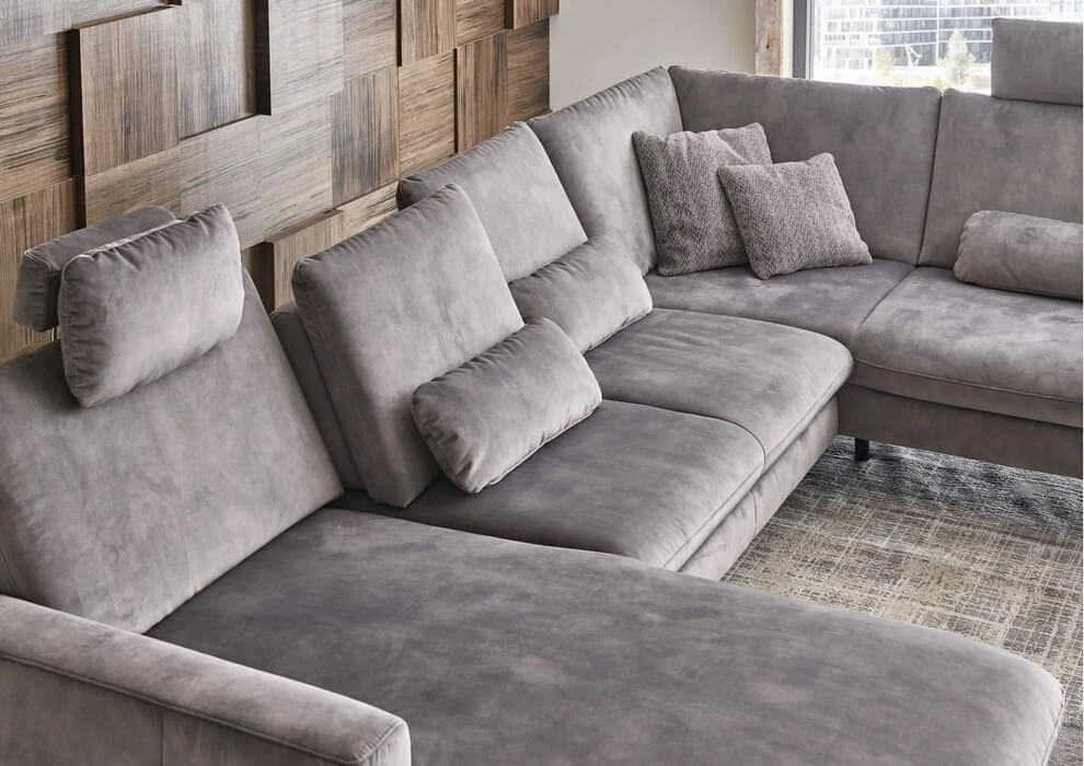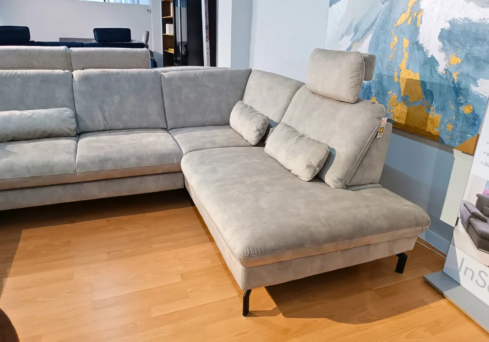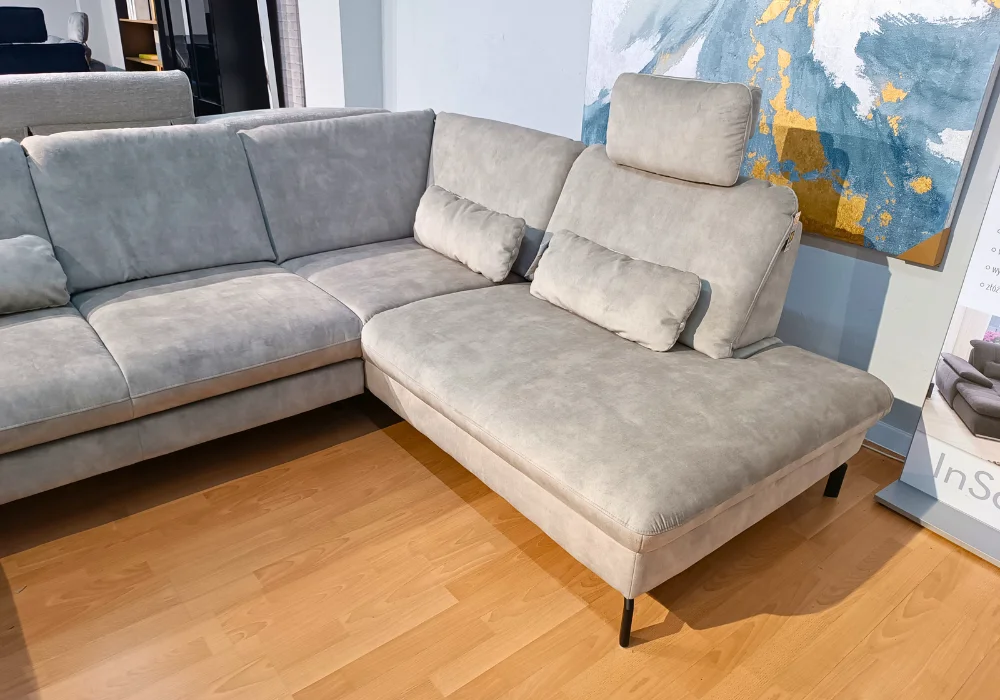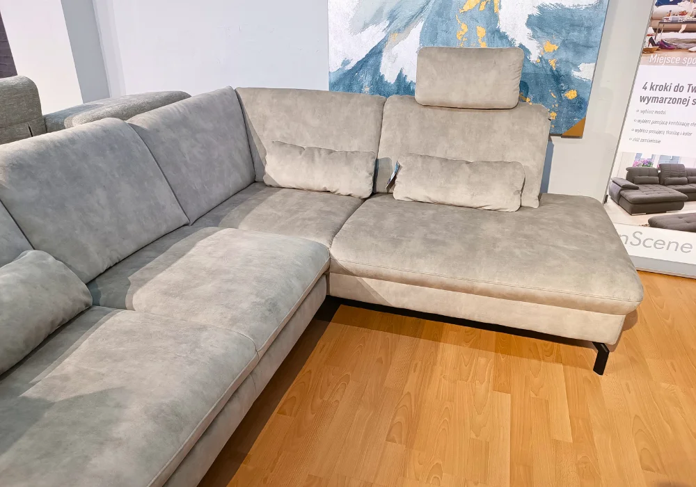 Dla jeszcze większego komfortu narożnik wyposażono w dwa ruchome zagłówki oraz trzy poduszki lędźwiowe, które wspierają prawidłową postawę i zapewniają wygodę podczas codziennego użytkowania.