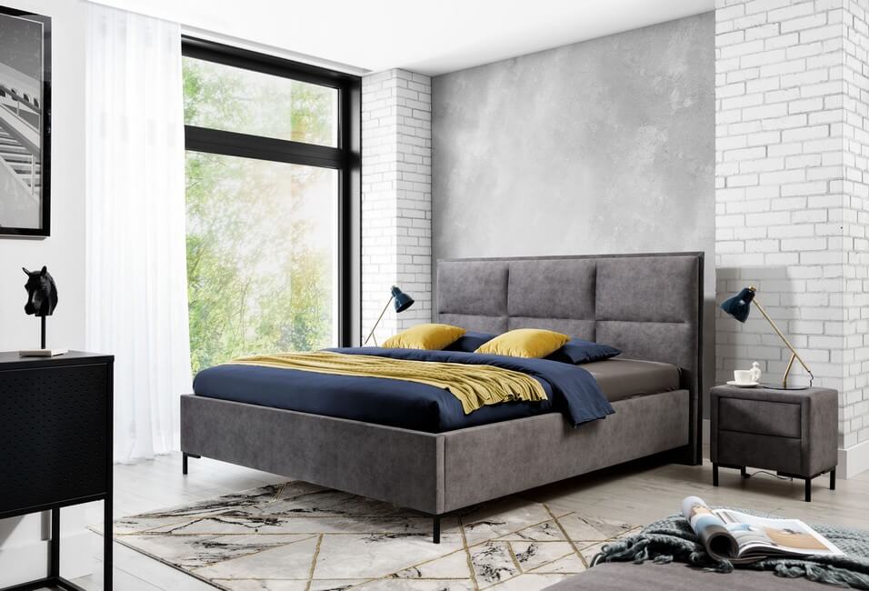 Łóżko dostępne w kilkuset wzorach obić, zarówno tkanin jak i ekoskór. Do łóżka doskonale pasuje stolik Nord z kolekcji mebli uzupełniających.