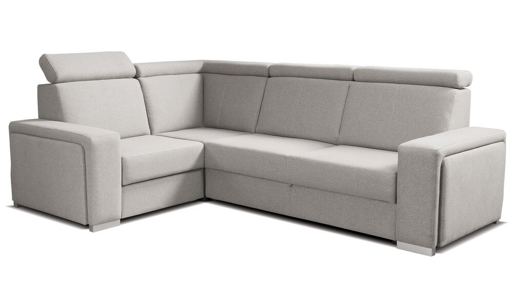 ONTARIO to elegancki i wygodny narożnik modułowy, wypełniony sprężynami falistymi i pianką. Komfortu użytkowania dodają ruchome zagłówki. Dostępny jest w wersji lewostronnej lub prawostronnej. Posiada funkcję spania z pojemnikiem na pościel.