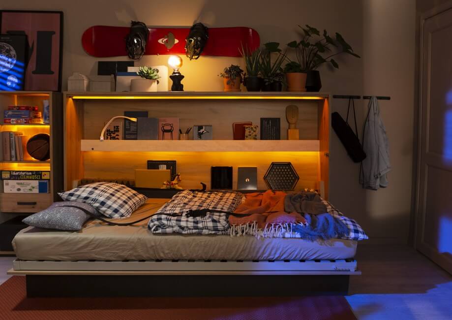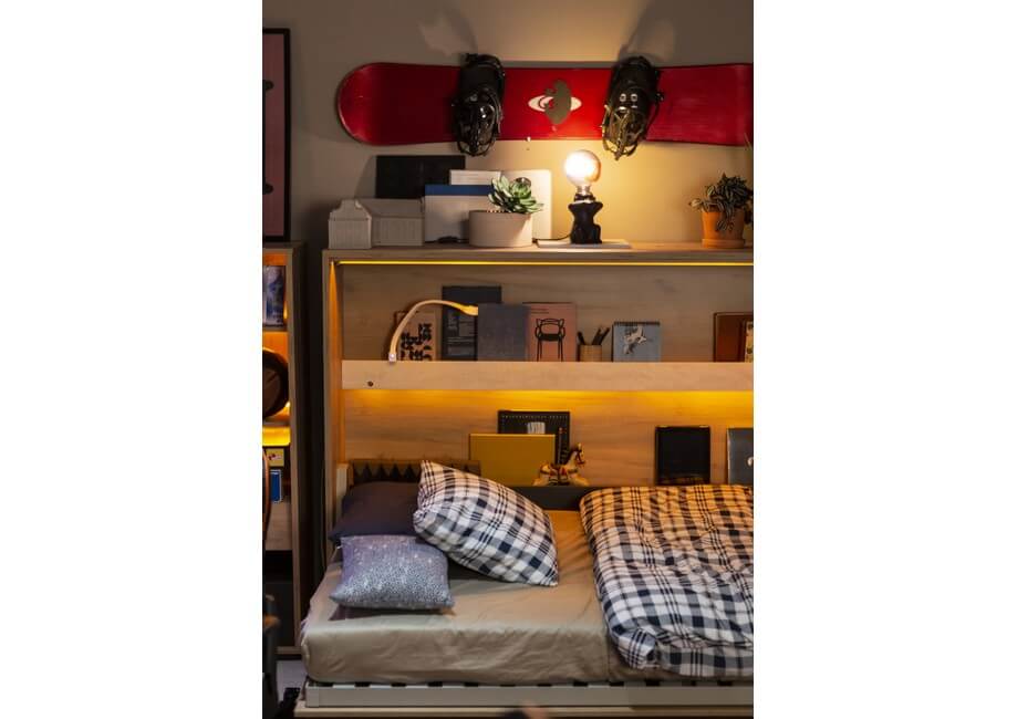 CONCEPT JUNIOR jest certyfikowanym, atestowanym meblem bezpiecznym dla dzieci. Skonstruowany tak, aby jego użytkowanie było łatwe i wygodne dla najmłodszych domowników. Nowoczesny, pneumatyczny mechanizm pozwala lekko i łatwo otworzyć oraz zamknąć łóżko. A to nie wszystko! Półkotapczan CONCEPT JUNIOR jest dostępny w dwóch wersjach – pionowej i poziomej, co pozwala dopasować go do różnych wnętrz. Wybierz ten, który będzie idealnie pasował do Twojego pomieszczenia! Oświetlenie w kolorze pomarańczowym doda dziecku energii po wyczerpującym dniu.