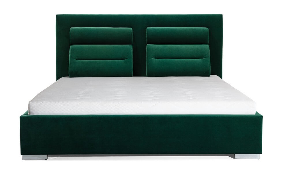 Do wyboru są 2 wersje wyposażenia: łóżko bez pojemnika i łóżko z pojemnikiem oraz 3 warianty nóżek. Łóżko dostępne w kilkuset wzorach obić, zarówno tkanin jak i skór.