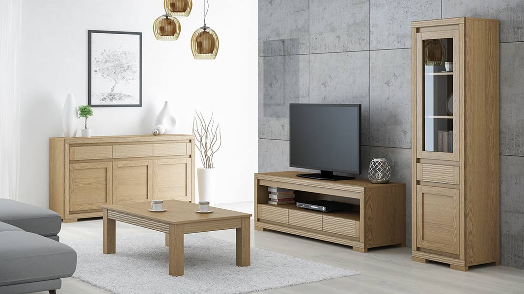 W kolekcji Quercus główną rolę odgrywa lite drewno dębowe. Proste kształty, wykończenie olejem oraz mocne szczotkowania uszlachetniają naturalną formę.