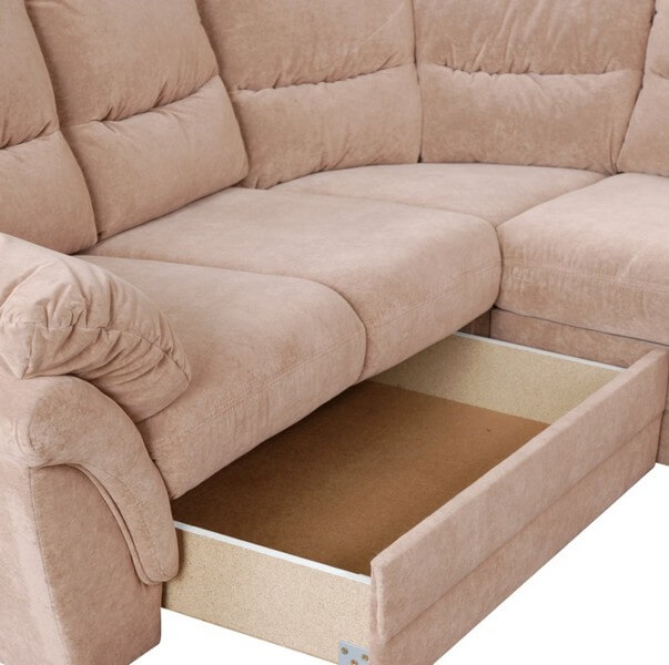 Narożnik Rico to nietuzinkowy wypoczynek, który odmieni Twój salon. Wyposażony jest w praktyczną funkcję spania i pojemnik na pościel ukryty w otomanie.