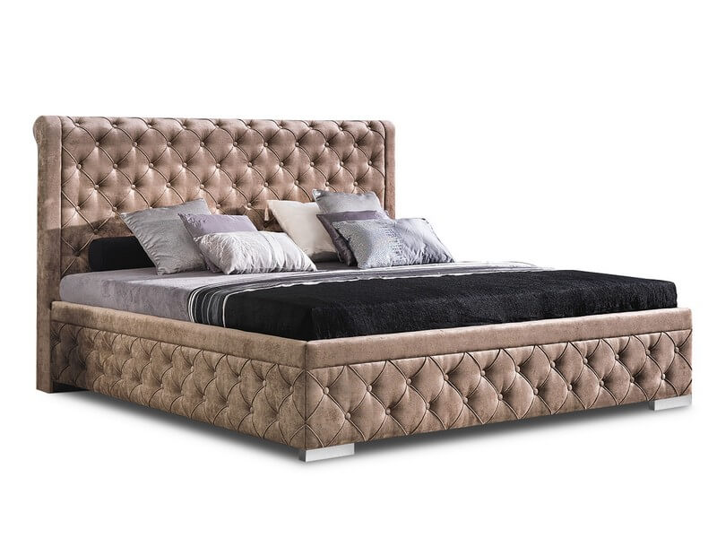 Ozdobą łóżka są piękne pikowania zdobiące ramy oraz wezgłowie.