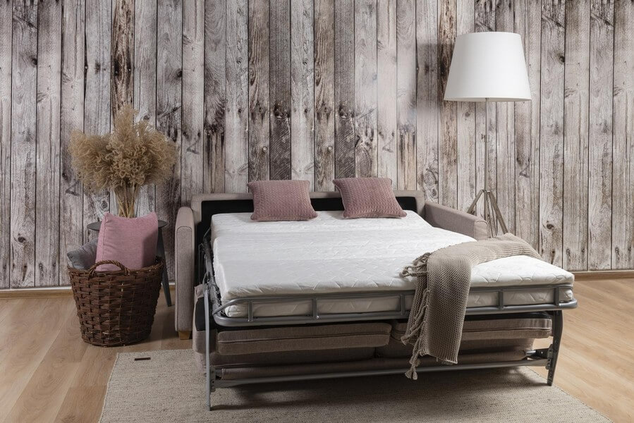 Sofa Sedac w ciągu dnia stanowi elegancki element wyposażenia salonu, a po rozłożeniu staje się komfortowym miejscem do spania, dzięki funkcji typu włoskiego z wbudowanym materacem.