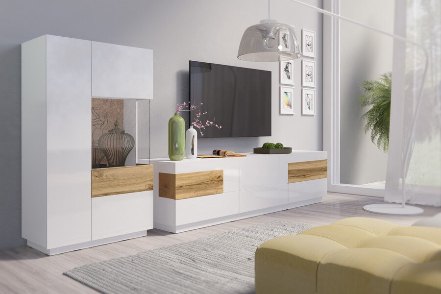W kolekcji Slike znajdziesz szereg brył o różnej wysokości i dających się zestawiać w dowolnych konfiguracjach- komody, witryny, szafki RTV. Program dostępny jest w trzech połączeniach kolorystycznych: