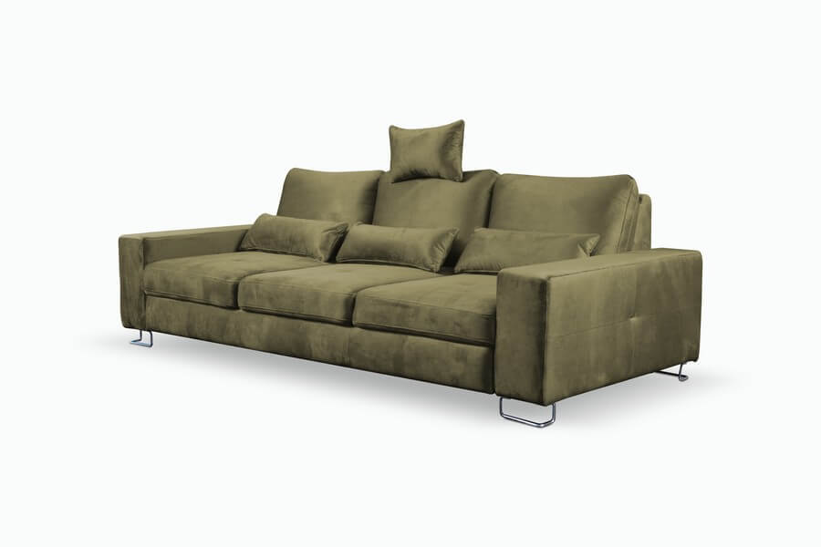 Kolejną zaletą 3-osobowej sofy Asti jest funkcja spania typu Delfin, dzięki czemu możesz łatwo przekształcić ją w wygodne miejsce do snu. Dodatkowy pojemnik na pościel pozwoli Ci przechowywać niezbędne rzeczy w zasięgu ręki.