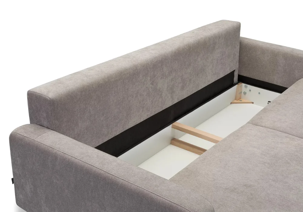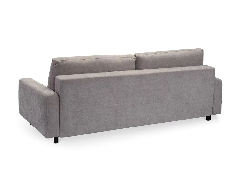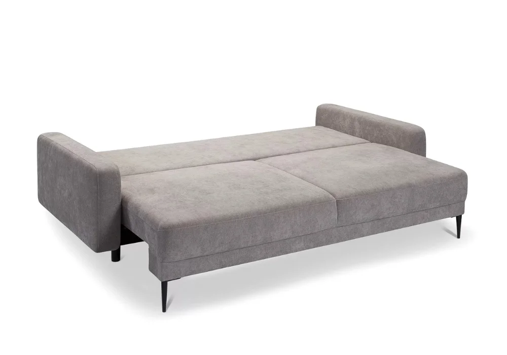 Bergen oferuje również praktyczne rozwiązania na co dzień. Funkcja spania typu DL pozwala szybko przygotować miejsce do nocnego odpoczynku, a pojemnik na pościel ułatwia przechowywanie i pomaga zachować porządek. Zastosowanie sprężyn falistych, pianki wysokoelastycznej i wypełnienia Top Elastic zapewnia stabilność, komfort i trwałość użytkowania.