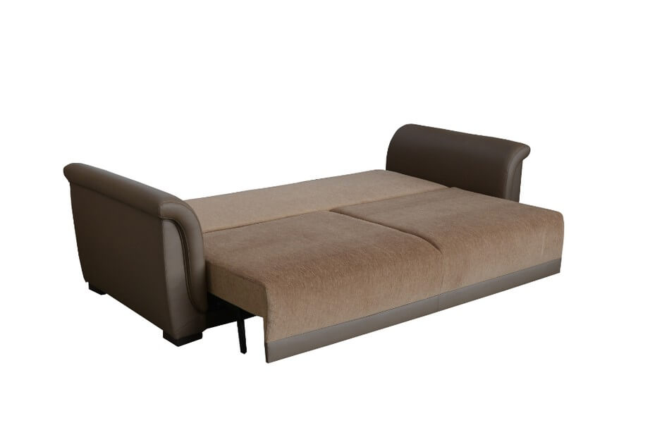 Rozkładana sofa Finezja II 3F/BK z funkcją spania i pojemnikiem na pościel. System rozkładania tzw. DL-ka z automatem wspomagającym rozkładanie.