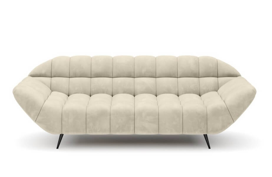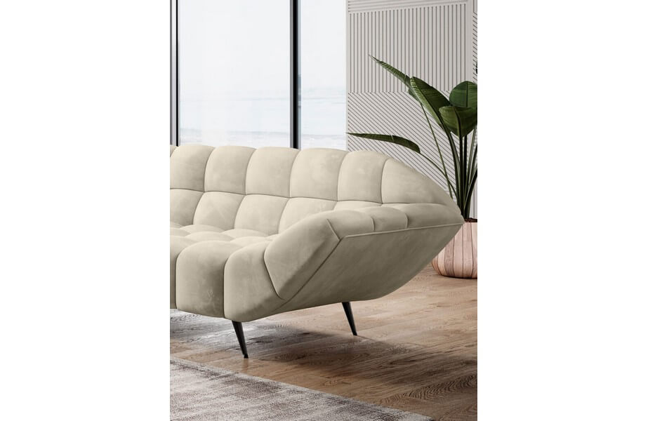 Pikowanie, które zdobi powierzchnię sofy, dodaje jej dodatkowego uroku i elegancji. To subtelny detal, który nadaje charakteru i podkreśla designerski charakter kanapy. Połączenie pikowania z metalowymi nóżkami sprawia, że sofa emanuje nowoczesnym i ekskluzywnym stylem.