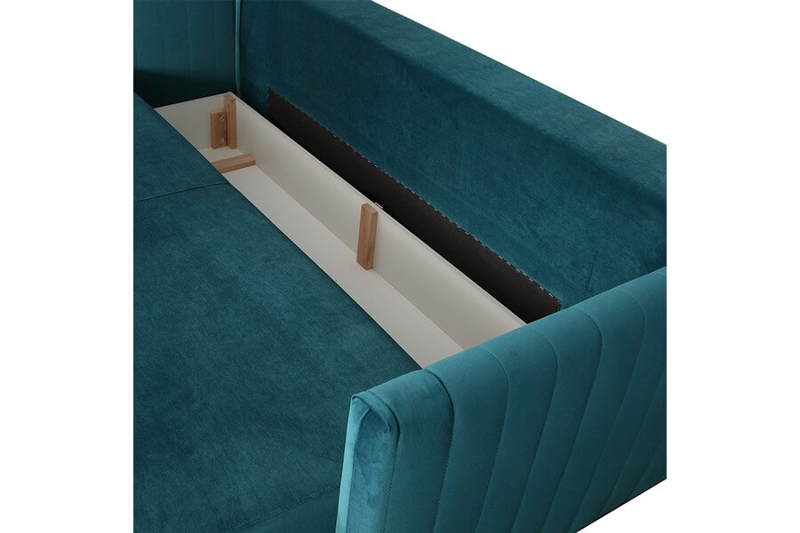 Sofa wyposażona w prosty mechanizm rozkładnia typu DL, który zapewnia łatwe i szybkie rozkładanie sofy do spania i zapewnia dostęp do pojemnika na pościel. Jednolicie wypełniony materac funkcji i siedziska tworzą równą powierzchnię spania.
