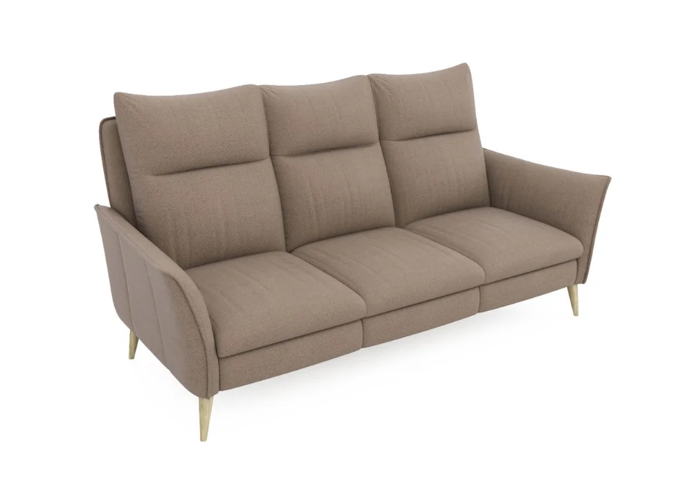 Sofa modułowa Ines czerpie inspiracje ze stylu retro, ale jej lekkość i współczesna forma sprawiają, że świetnie odnajdzie się w nowoczesnych aranżacjach. Smukłe, drewniane nogi dodają jej finezji, a wąskie podłokietniki optycznie wysmuklają bryłę, dzięki czemu sofa prezentuje się subtelnie nawet w mniejszych przestrzeniach. Charakterystyczne przeszycia na poduszkach oparciowych oraz dzielone siedziska podkreślają elegancki, dopracowany charakter kolekcji.
