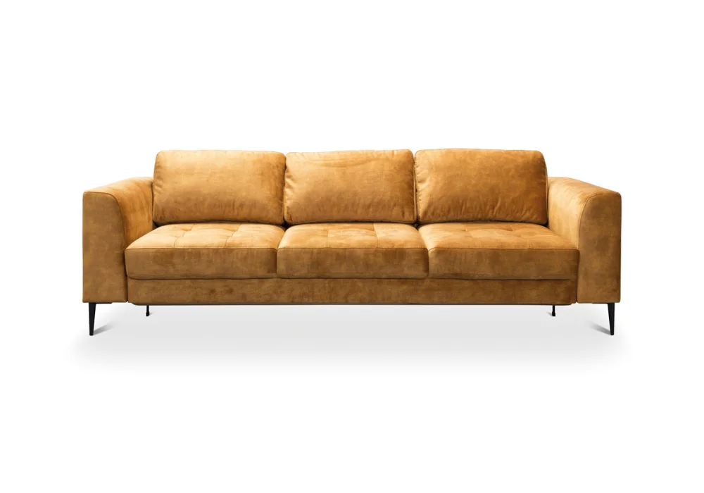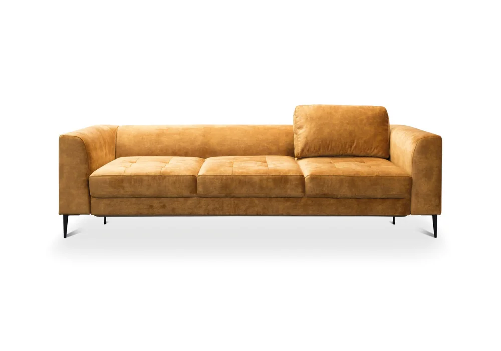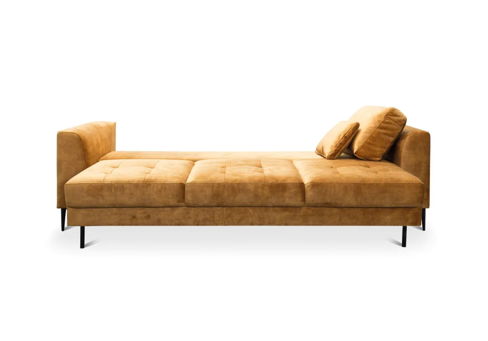 Sofa Luzi to propozycja dla osób, które cenią nowoczesny design w lekkim, przemyślanym wydaniu. Delikatnie uniesiona na smukłych, czarnych nogach z aluminium, prezentuje się elegancko i nie obciąża wizualnie przestrzeni – nawet gdy stoi w samym centrum salonu, do czego została stworzona. Starannie dopracowane detale, miękkie poduchy lędźwiowe oraz możliwość wyboru ustawienia recamieru sprawiają, że Luzi bez trudu dopasowuje się do codziennych potrzeb. A gdy nadejdzie pora na odpoczynek – funkcja spania, elastyczna pianka i sprężyny faliste zadbają o komfortową regenerację. Wbudowany pojemnik na pościel dopełnia całość praktycznym akcentem, idealnym na co dzień.
