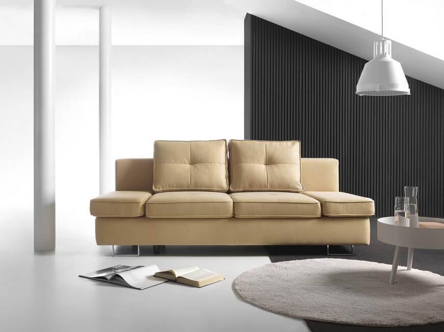 Sofa wyposażona jest w funkcję spania oraz posiada pojemnik na pościel. Dodatkowym atutem wypoczynku jest łatwy system rozkładania typu DL – wystarczy lekko podnieść siedzisko do góry i przesunąć do przodu.
