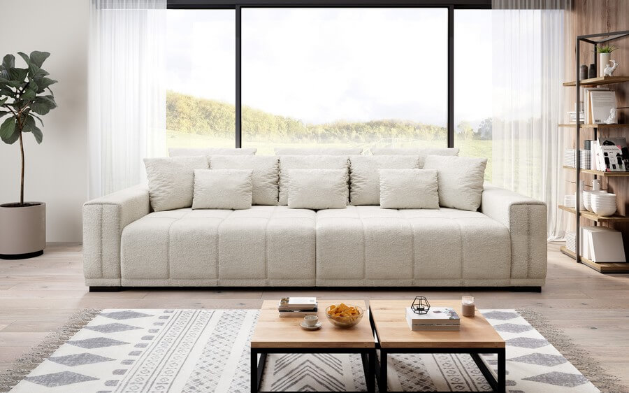 Mindelo wyróżnia się masywnym i wygodnym siedziskiem, które zapewnia doskonałe wsparcie dla ciała. Przeszycia oraz delikatne wciągi podkreślają elegancję mebla, nadając mu unikatowego charakteru. Elastyczne poduszki zapewniają jeszcze większy komfort, co pozwala na prawdziwy relaks dla zmęczonego ciała.