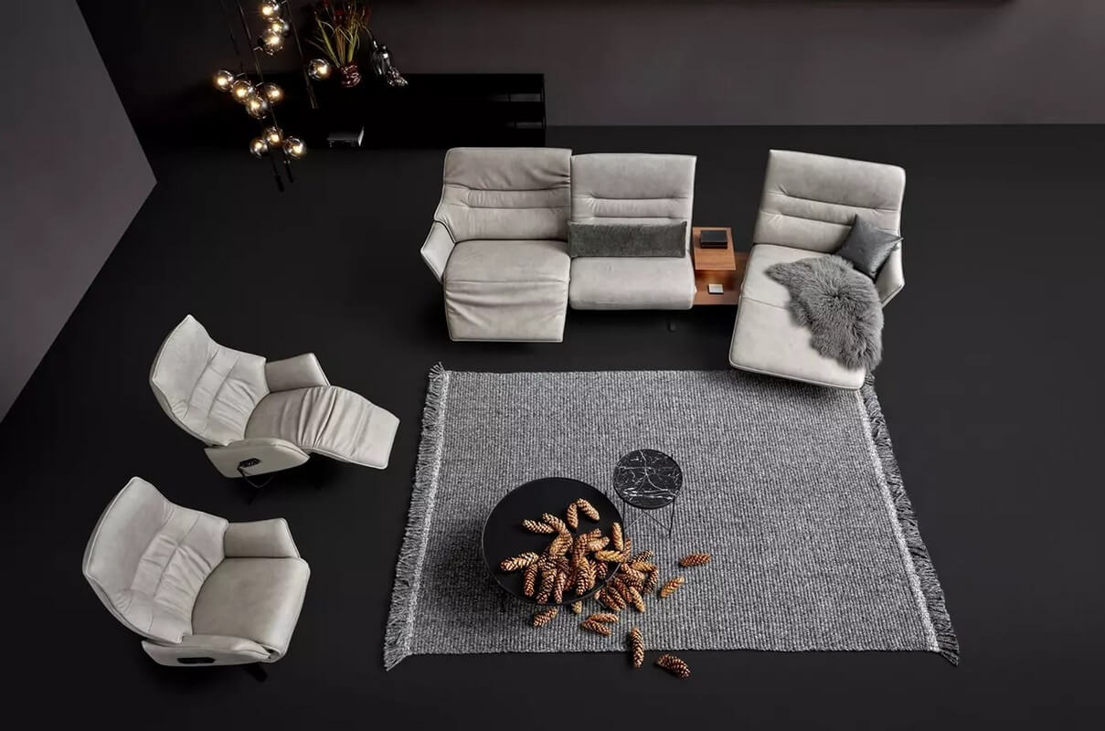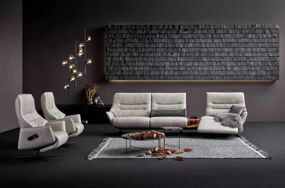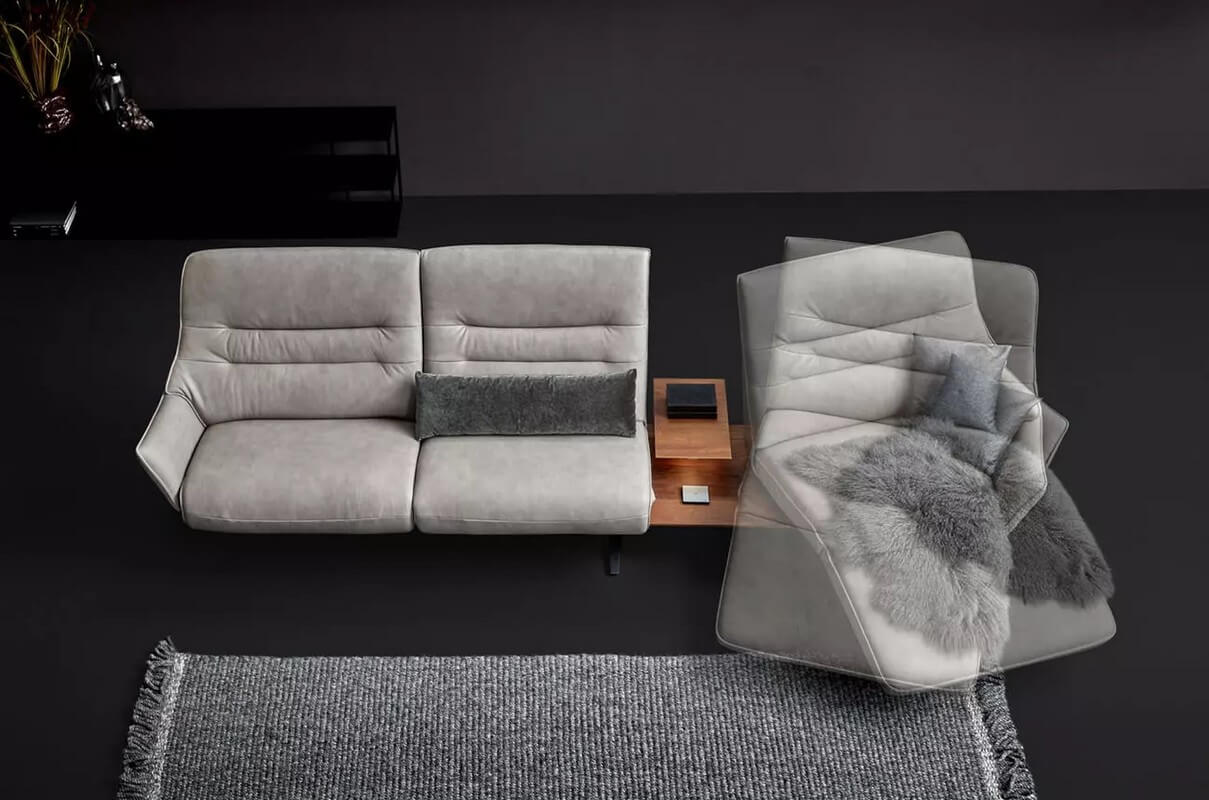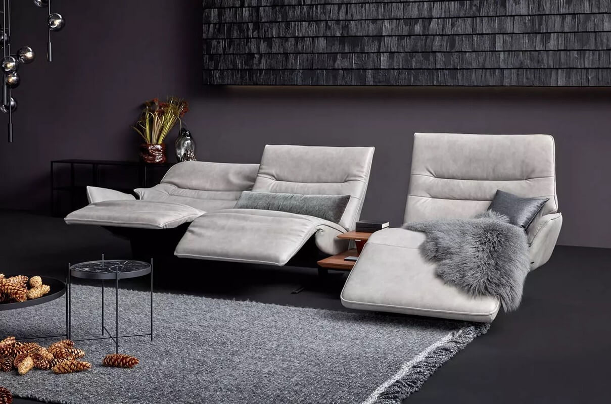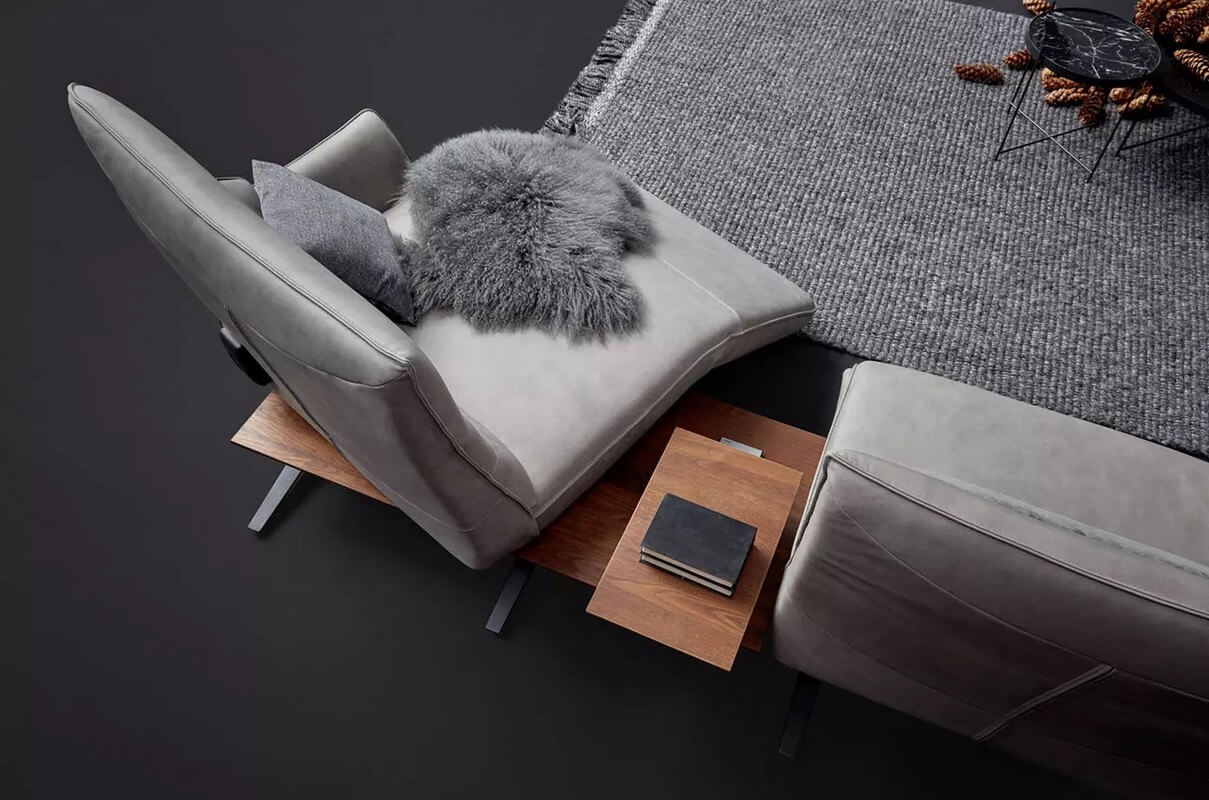 Drewniane elementy stolika z oświetleniem, indukcyjna stacja ładowania, port USB i zintegrowane gniazdko wtykowe sprawiają, że sofa 4905 staje się centrum technologicznej wygody. Możliwość ładowania urządzeń elektronicznych i korzystania z oświetlenia bez konieczności opuszczania sofy to niewątpliwe udogodnienie dla użytkowników.