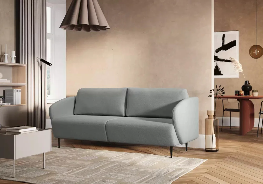 Sofa Naolia to stylowy i praktyczny wybór do każdego wnętrza. Jej solidna konstrukcja, oparta na drewnie, płycie wiórowej i sklejce, zapewnia trwałość i stabilność. Siedzisko oraz oparcie wykonane z wysokoelastycznej pianki HR, pianki poliuretanowej i sprężyn falistych gwarantują wygodę zarówno podczas codziennego użytkowania, jak i snu.