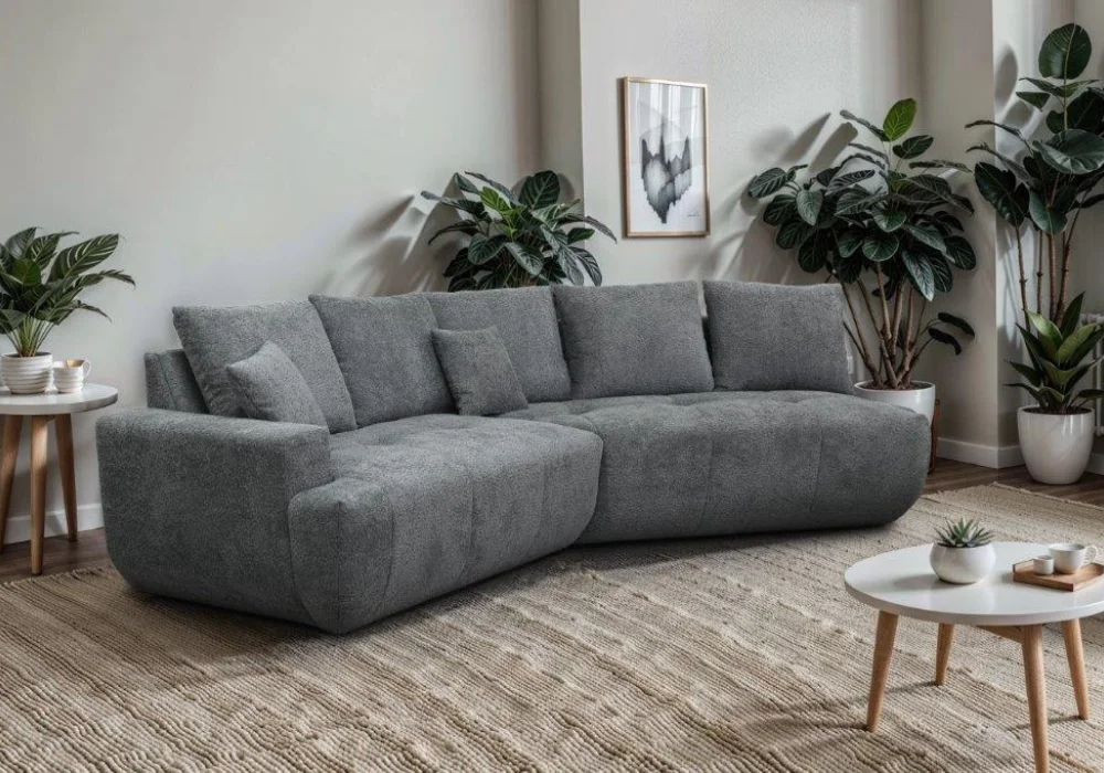 Komfort relaksu zapewniają duże poduszki oparciowe i dekoracyjne, które aż kuszą, by się w nie wtulić po intensywnym dniu. Miękkie wypełnienie i odpowiednio zaprojektowane proporcje zachęcają do długiego odpoczynku, czy to z filiżanką kawy, czy podczas wieczornego seansu.