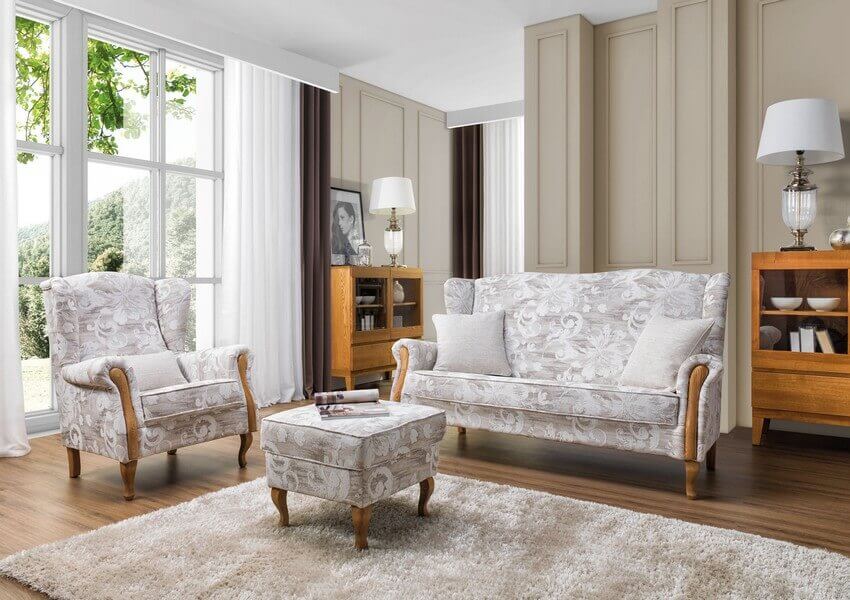 Pomimo swojego klasycznego charakteru, meble z kolekcji NOBLE doskonale pasują również do nowoczesnych wnętrz. Możliwość wyboru elementów drewnianych w różnorodnych kolorach, zgodnie z paletą barw oferowaną przez Unimebel, sprawia, że każdy klient może dopasować meble do swojego gustu. Poduszki w komplecie do zestawu 3SN + FL + FL. Produkt dostępny w pełnej ofercie tkanin.