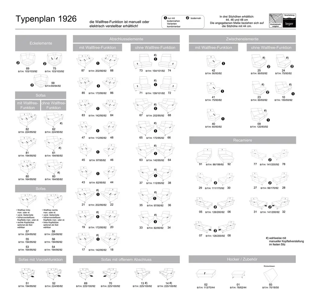 Dzięki ponad 60 możliwym kombinacjom, program Planopoly 1926 pozwala na perfekcyjne dostosowanie sofy do potrzeb użytkownika i specyfiki wnętrza. Model oferuje lekki wizualnie design łączący sofę i szezlong, z możliwością dodania elementów narożnych według własnych preferencji.