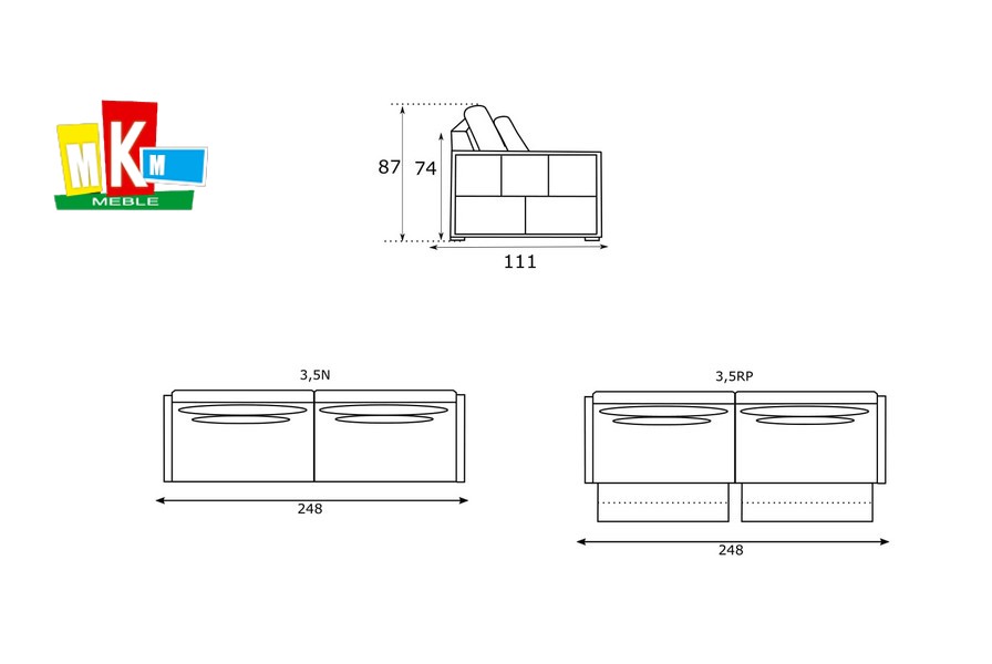 Wymiary: szerokość: 248cm, głębokość: 111cm, wysokość: 87cm.