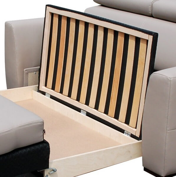 Nowoczesna sofa S-Max 2.5F-2-1 i 2os wyposażona jest w funkcję spania z pojemnikiem na pościel. W sofie zastosowano sprężynę falistą. Komfortu użytkowania dodają ruchome zagłówki.
