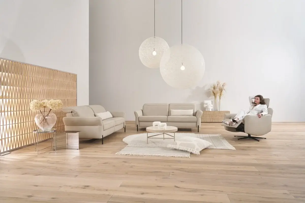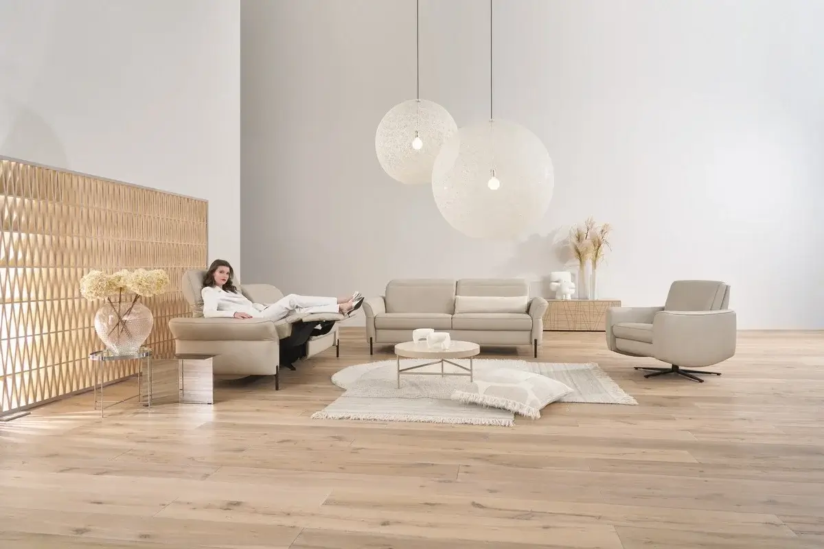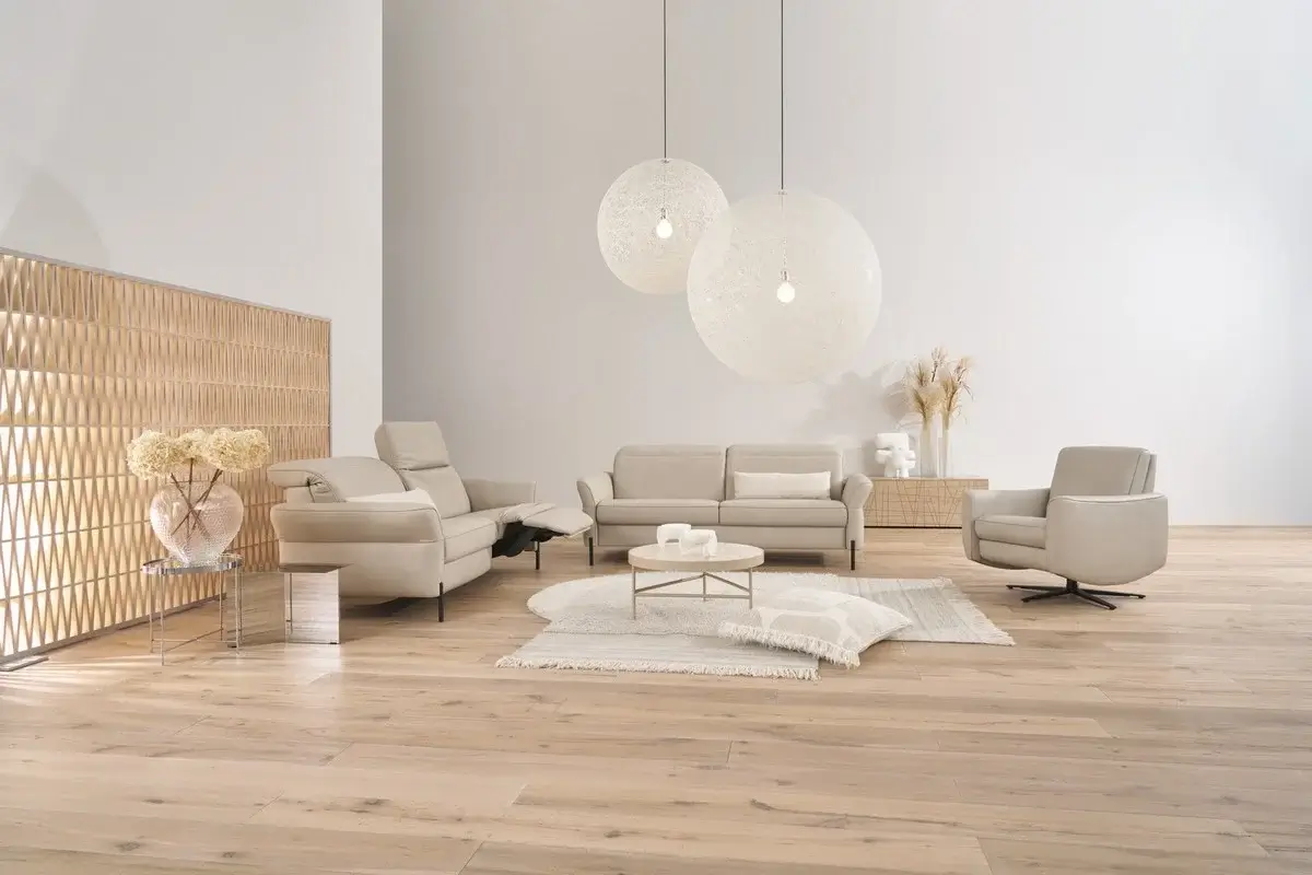 Sofa Spektra 1485 jest dostępna w trzech wariantach twardości siedziska oraz w dwóch wysokościach, co pozwala na maksymalne dopasowanie komfortu do indywidualnych preferencji. Różne warianty nóg oraz ponad 500 dostępnych tkanin i materiałów obiciowych sprawiają, że można idealnie dostosować sofę do stylu wnętrza. Dodatkowo liczne zintegrowane funkcje relaksacyjne oferują komfort na najwyższym poziomie, tworząc prywatną oazę wypoczynku.