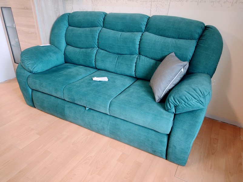 Przytulna 3 osobowa sofa Stella wyposażona jest w funkcję spania, nie posiada pojemnika na pościel. Oparcie zdobią efektowne pikowania, co nadaje jej elegancji. Sofa może stać blisko ściany. Stella to idealne rozwiązanie do małych mieszkań bez wydzielonej sypialni.