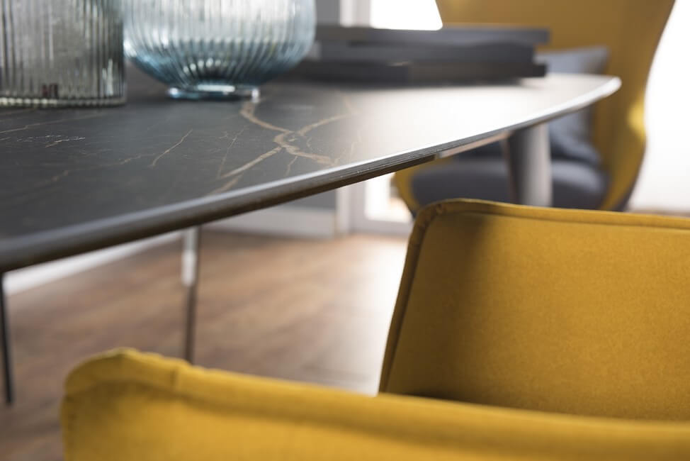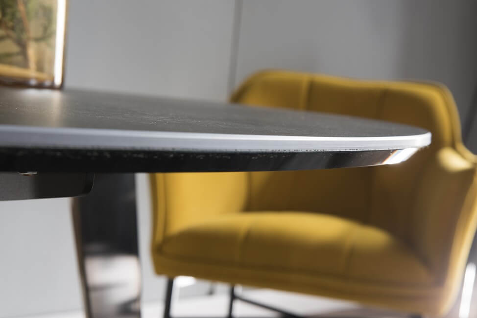 Elegancki i nowoczesny stół z blatem ze spieku kwarcowego Basserto to niebanalny design i najwyższa jakość wykonania. Blat wykonany ze włoskiego spieku kwarcowego marki Laminam o grubości 5 mm. Do wyboru blat: spiek kwarcowy 5 mm + szkło 10 mm bez podcięcia, spiek kwarcowy 5 mm + szkło 10mm z podcięciem, spiek kwarcowy 5mm + mdf 25 mm z pocięciem.