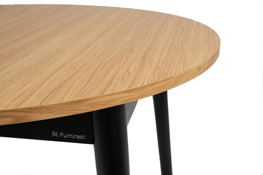 Okrągły stół Bella to stylowy i funkcjonalny mebel, dostępny w dwóch rozmiarach: 95 cm i 110 cm średnicy. Dzięki możliwości rozłożenia o dodatkowe 2×40 cm z łatwością dostosowuje się do różnych potrzeb użytkowników. Blat pokryty fornirem nadaje mu naturalny, drewniany charakter, a solidna konstrukcja oparta na litej, okrągłej nodze gwarantuje stabilność i trwałość.