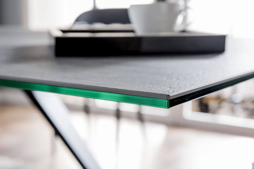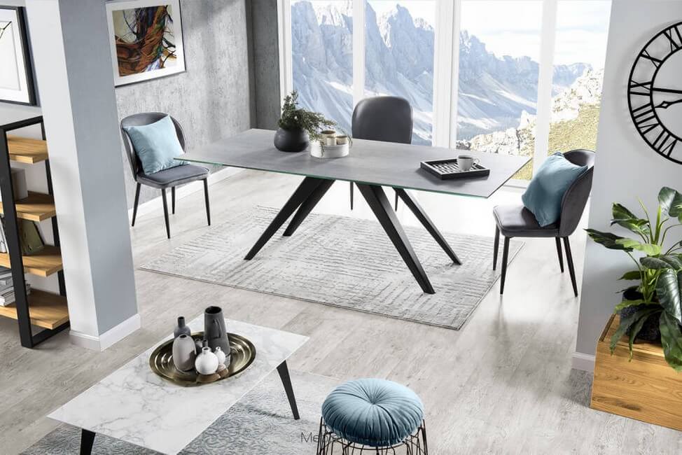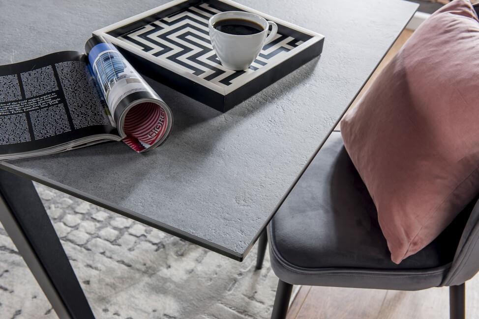 Wyjątkowy i efektowny stół z blatem ze spieku kwarcowego. Julietta to najwyższa jakość wykonania i ponadczasowy design, która zadowoli najbardziej wymagających. Blat wykonany ze włoskiego spieku kwarcowego marki Laminam o grubości 5 mm. Możliwość wyboru blatu: spiek kwarcowy 5 mm + szkło 10 mm bez podcięcia, spiek kwarcowy 5 mm + szkło 10mm z podcięciem, spiek kwarcowy 5mm + mdf 25 mm z pocięciem.