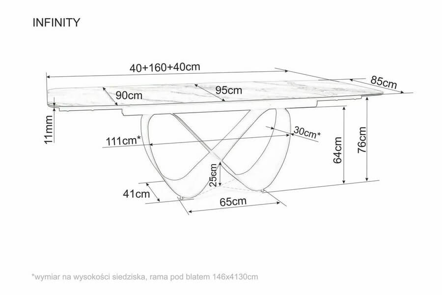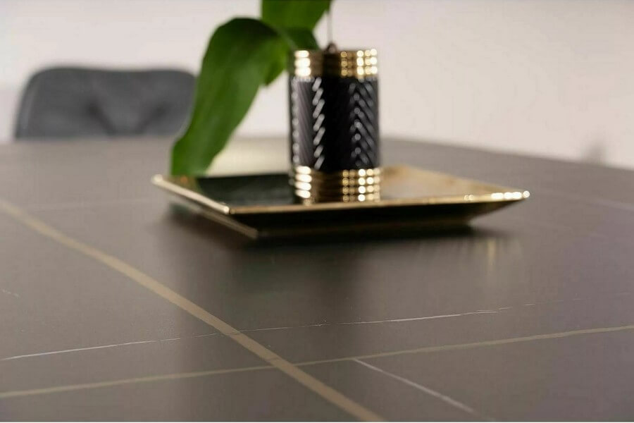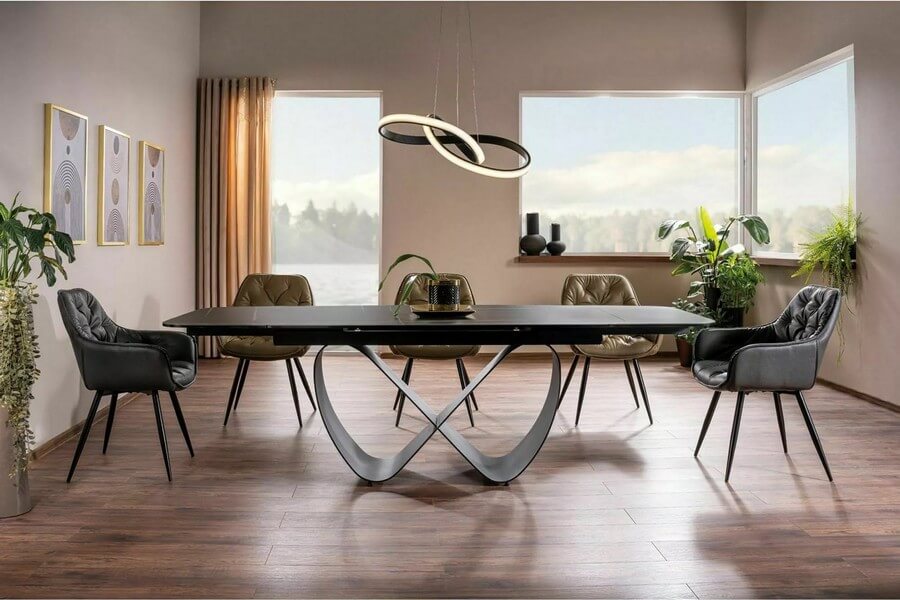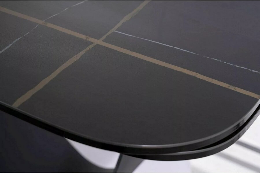 Piękny i elegancki stół rozkładany Infinity to doskonały wybór dla miłośników stylu i funkcjonalności. Jego niebanalnie zdobiony blat w kolorze Azario Black idealnie komponuje się z czarnym matowym stelażem, tworząc harmonijną i nowoczesną całość. Wyjątkowy blat to kombinacja szkła hartowanego i wysokiej jakości hiszpańskiej ceramiki, co gwarantuje nie tylko trwałość, ale również wyrafinowany wygląd.